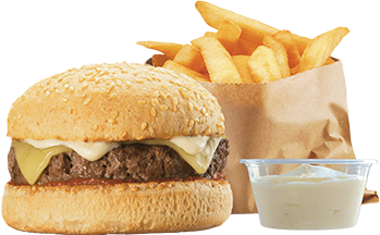 All our burgers come with lettuce, tomato, onions and burly sauce (like fry sauce)!